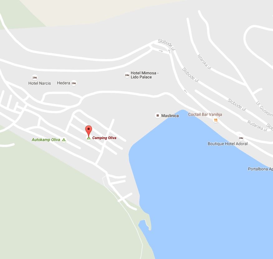 Popularny kemping z 241 domkami mobilnymi jest częścią znanego ośrodka wypoczynkowego „Maslinica” i znajduje się na wschodnim wybrzeżu półwyspu Istria. Przyjazne dzieciom, łagodnie opadające kamieniste plaże kompleksu, a także przestronny teren basenowy oferują najlepsze warunki do spędzenia urozmaiconego wypoczynku na plaży z rodziną. Do centrum Rabac około 800 m.