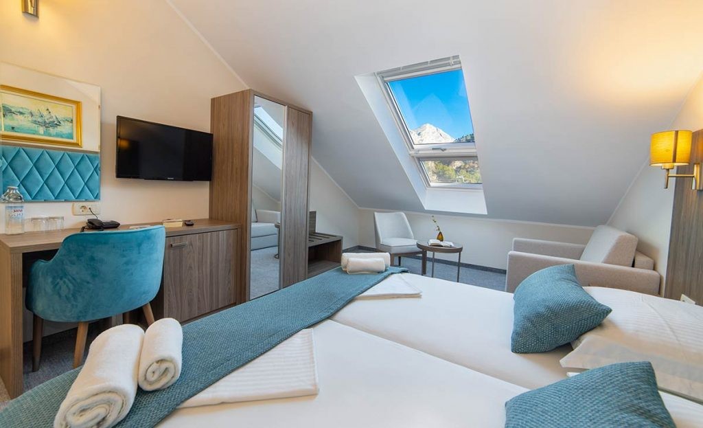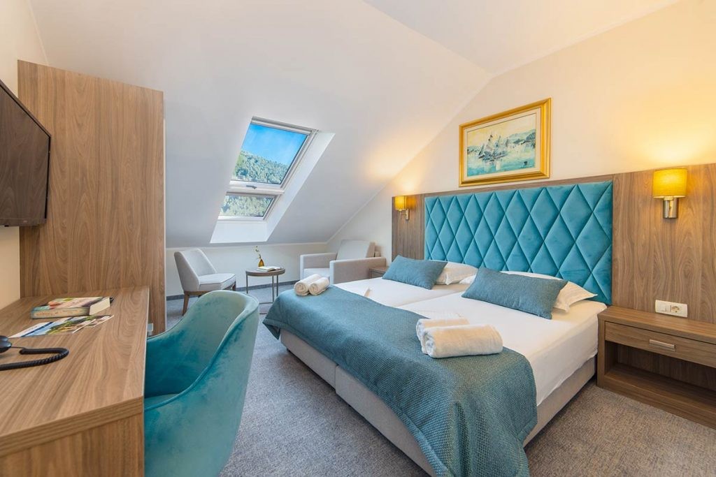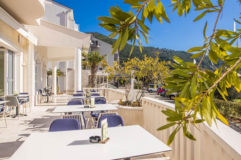 Hotel położony jest w zatoce niedaleko miejscowości Drvenik (około 1,5 km), małej wioski rybackiej oddalonej o około 28 kilometrów na południe od Makarskiej. Z Drvenika codziennie odpływają promy na wyspę Hvar – idealną na wycieczki i rejsy odkrywcze. Hotel dysponuje łącznie 62 pokojami i 5 apartamentami, co gwarantuje komfortowy pobyt w rodzinnej atmosferze. W hotelowej restauracji można delektować się specjałami kuchni chorwackiej i międzynarodowej.