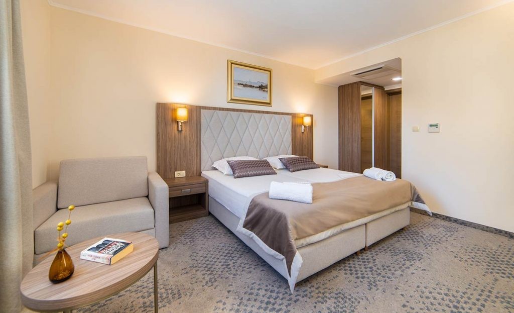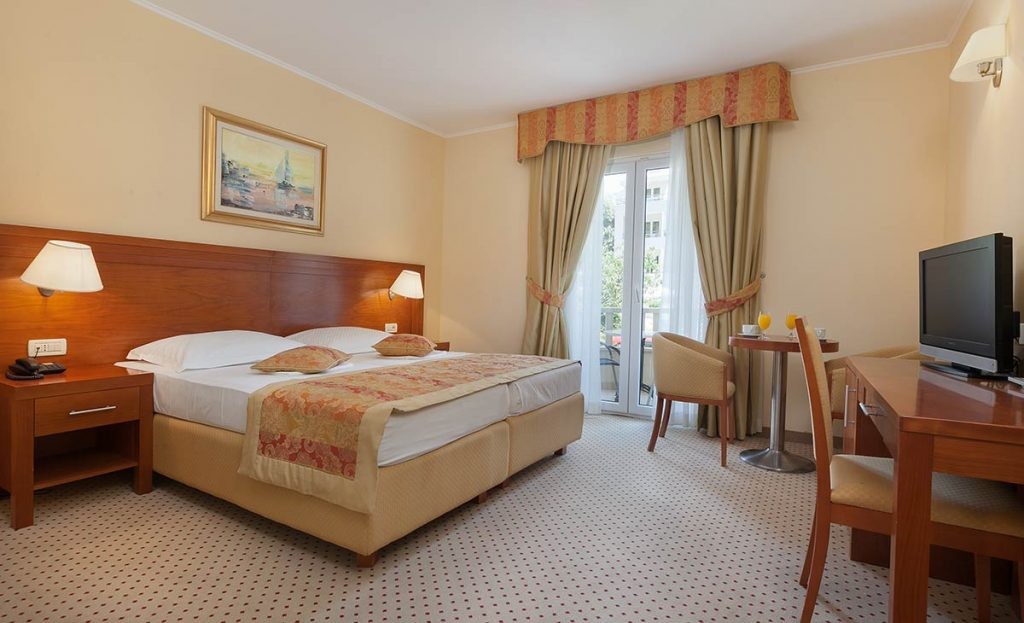 62 pokoje: komfortowo urządzone, z klimatyzacją, telewizją satelitarną, minibarem, sejfem, telefonem, bezpłatnym Internetem WiFi, wanną lub prysznicem/WC, balkonem.Pokój dwuosobowy Standared: ok. 22 m², z łóżkiem małżeńskim, możliwość rezerwacji zarówno od strony parku (PS), jak i od strony morza (MS).Pokój dwuosobowy Deluxe: ok. 22 m², wybudowany w 2020 roku, z łóżkiem małżeńskim, łazienką z prysznicem/WC, można rezerwować zarówno od strony parku (PS), jak i od strony morza (MS).Pokój dwuosobowy Economy: ok. 22 m², na najwyższym piętrze / poddaszu, z oknem dachowym, bez balkonu.