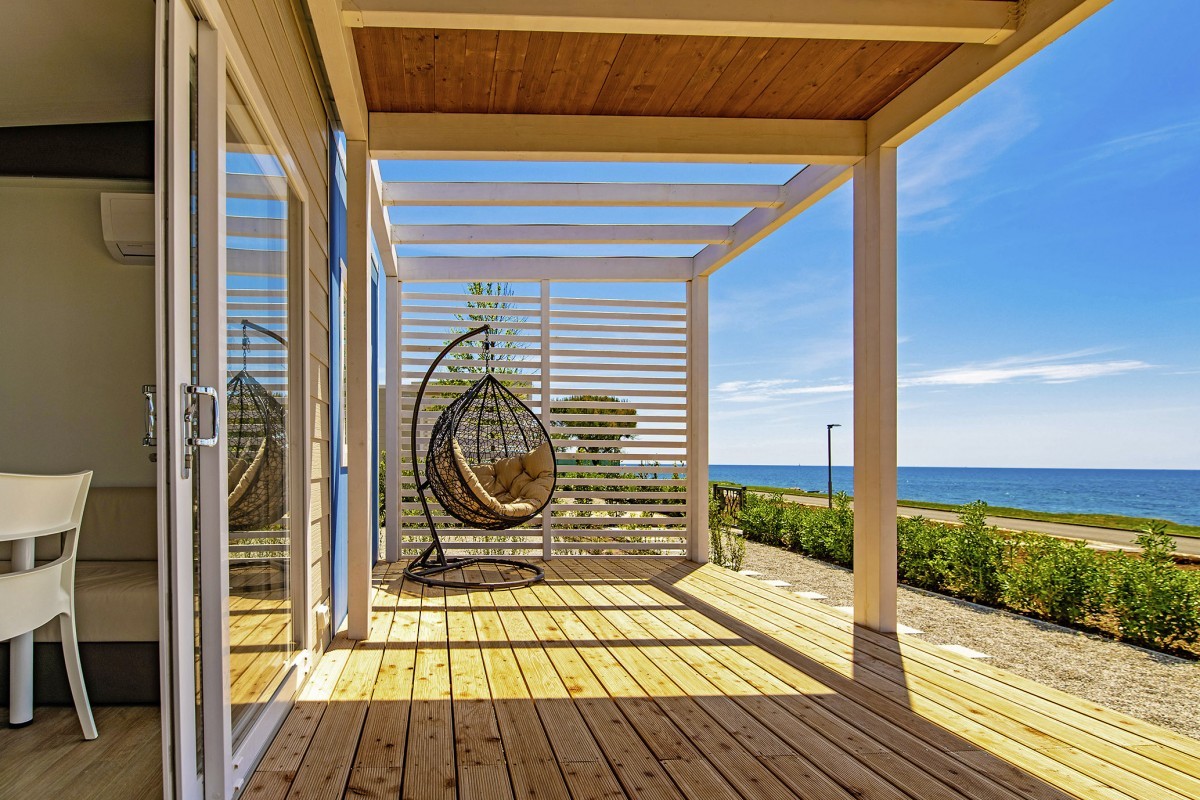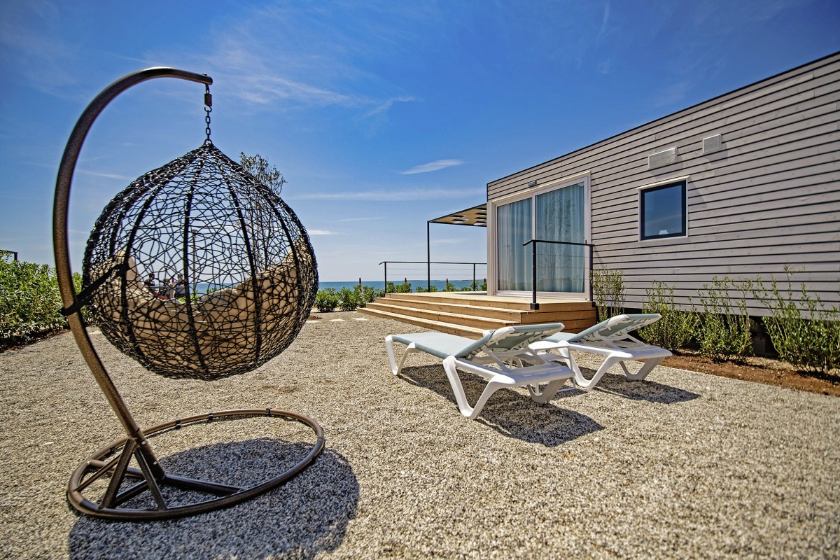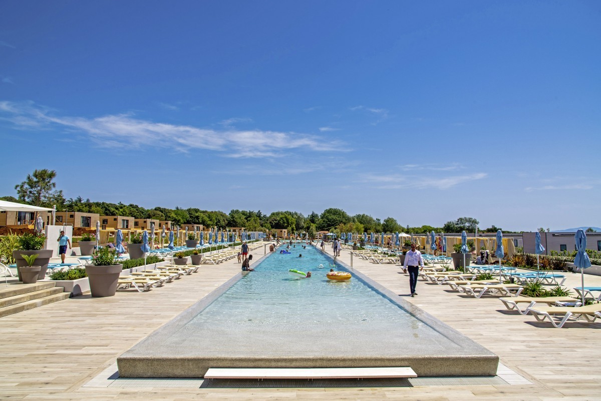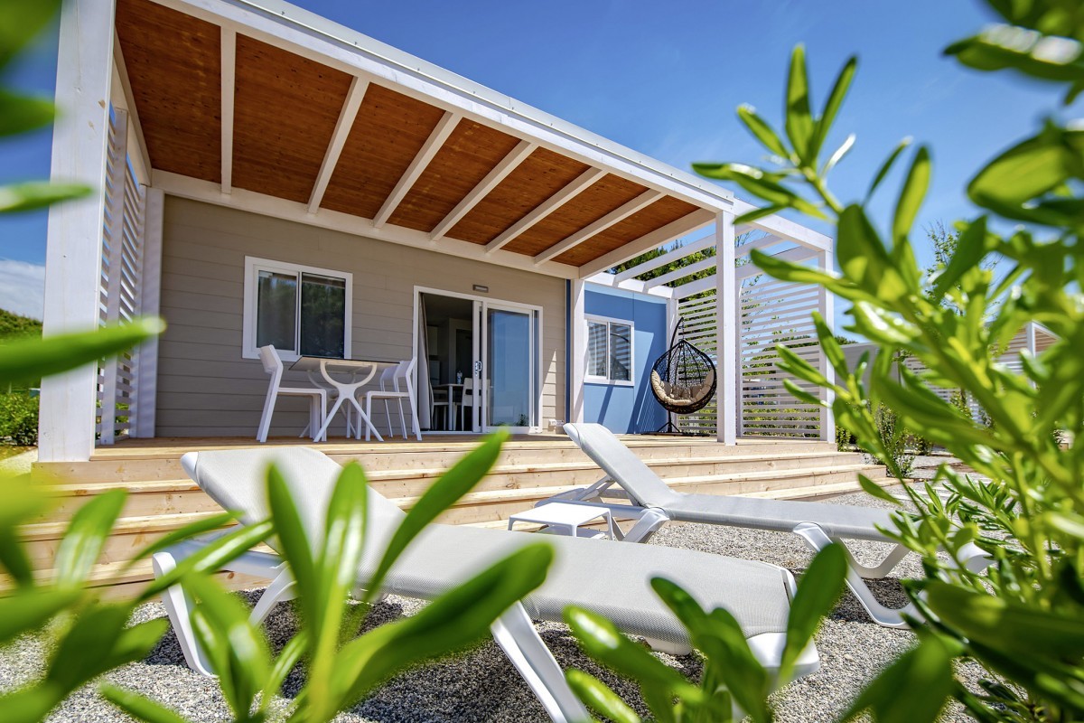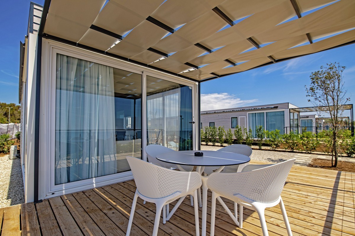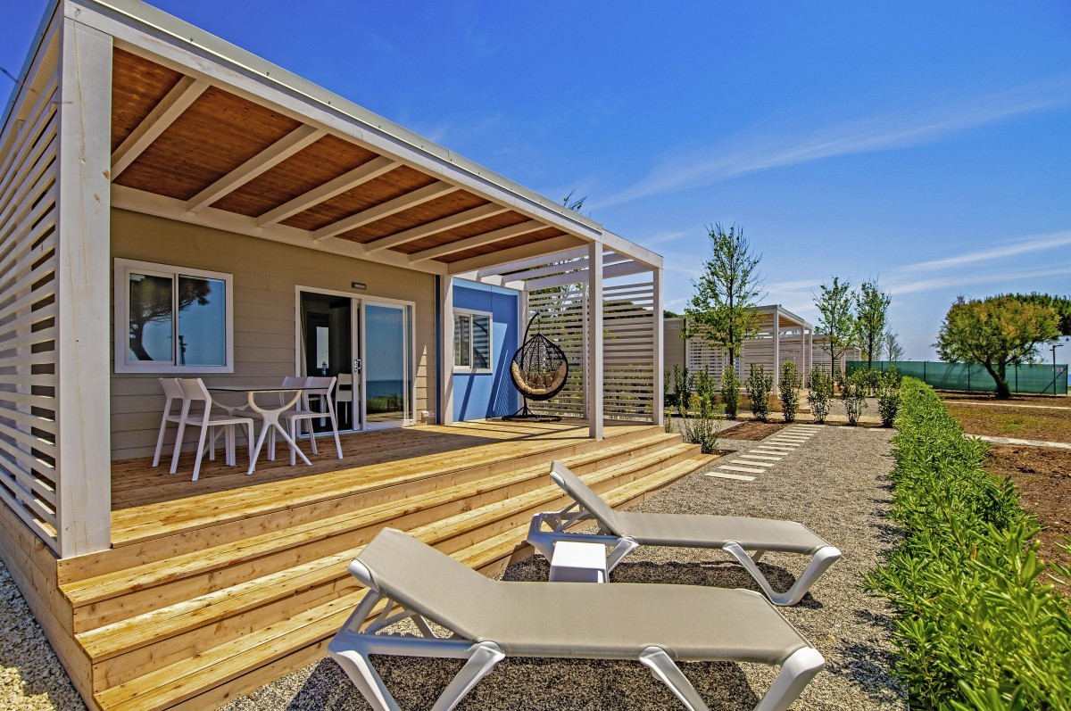 Mobilhome "Next" dla 4-5 osób: ok. 30 m², nowoczesne umeblowanie, sypialnia z łóżkiem małżeńskim (160 x 190 cm), sypialnia z dwoma pojedynczymi łóżkami (każde 80 x 190 cm), salon-sypialnia z w pełni wyposażonym aneksem kuchennym (lodówka z zamrażarką, kuchenka, kuchenka mikrofalowa, ekspres do kawy) i miejscem do spania dla jednej osoby, dwie łazienki z prysznicem/WC i suszarką do włosów, zadaszony, umeblowany taras (ok. 20 m²). W domku dostępny jest bezpłatny internet WiFi. Ponadto telewizja satelitarna i klimatyzacja.Mobilhome „Green” dla 4-5 osób: ok. 37 m², nowoczesne umeblowanie, sypialnia z łóżkiem małżeńskim (160 x 200 cm), sypialnia z dwoma pojedynczymi łóżkami (każde 80 x 195 cm), salon z sypialnią z w pełni wyposażonym aneksem kuchennym (lodówka z zamrażalnikiem, kuchenka, kuchenka mikrofalowa, ekspres do kawy) i miejscem do spania dla jednej osoby, dwie łazienki z prysznicem/WC i suszarką do włosów, zadaszony, umeblowany taras (ok. 25 m²). W domku dostępny jest bezpłatny internet WiFi. Ponadto telewizja satelitarna i klimatyzacja.Mobilhome "Villa" dla 4-5 osób: ok. 40 m², nowoczesne umeblowanie, sypialnia z łóżkiem małżeńskim (160x200 cm), sypialnia z łóżkiem piętrowym (dół 140x195 cm, góra 80x195 cm), salon-sypialnia z w pełni wyposażonym aneksem kuchennym (lodówka z zamrażalnikiem, kuchenka, mikrofalówka, ekspres do kawy), dwie łazienki z prysznicem/WC i suszarką do włosów, zadaszony i umeblowany taras (ok. 25 m²). W domku dostępny jest bezpłatny internet WiFi. Ponadto telewizja satelitarna i klimatyzacja. Goście domków typu Villa mogą bezpłatnie korzystać z leżaków i parasoli przy basenach.Mobilhome "Deluxe Camping Villa with Pool" dla 4-6 osób: ok. 57 m², nowocześnie i komfortowo urządzony, sypialnia z łóżkiem małżeńskim (180x200 cm) i łazienką z prysznicem/WC i suszarką do włosów, sypialnia z dwoma pojedynczymi łóżkami (każde 80x200 cm), łóżkiem piętrowym (70x195 cm) i łazienką z prysznicem/WC, salon z rozkładaną sofą (80x185 cm), w pełni wyposażony aneks kuchenny (lodówka z zamrażalnikiem, zmywarka, płyta indukcyjna, kuchenka mikrofalowa, czajnik i ekspres do kawy Illy), mała część biurowa z biurkiem i gniazdkami, zadaszony umeblowany taras (ok. 17 m²), prywatny ogródek o powierzchni ok. 300 m² z prywatnym basenem ze słodką wodą (ok. 12 m², głębokość 100 cm) i leżakami. W domku dostępny jest bezpłatny internet WiFi. Ponadto 2 telewizory Smart TV, klimatyzacja, sejf na laptopa, grzejniki elektryczne w łazienkach i sypialniach.