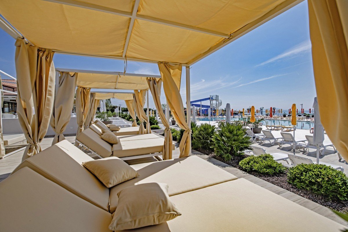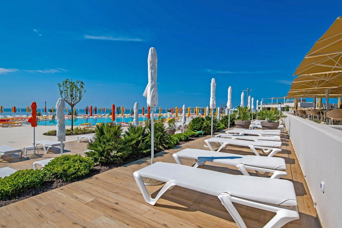 Recepcja, kilka restauracji i kawiarni, bar szybkiej obsługi i pizzeria, supermarket, kiosk z gazetami i pamiątkami, sklep plażowy, kącik biznesowy, plac zabaw dla dzieci, klub dla dzieci i nastolatków, programy animacyjne dla dzieci i dorosłych (w zależności od sezonu). Goście kompleksu mają do dyspozycji centralny basen z atrakcjami (ze słodką wodą), strefę dla dzieci o łącznej powierzchni 600 m² oraz basen typu infinity o powierzchni 400 m² (ze słodką wodą) z tarasami słonecznymi, wypożyczalnią leżaków i parasoli (ograniczona liczba, płatna) oraz barami przy basenie. Na terenie kompleksu znajdują się również stacje ładowania samochodów elektrycznych (ograniczona liczba, płatne). Na miejscu dostępny jest bezpłatny parking.