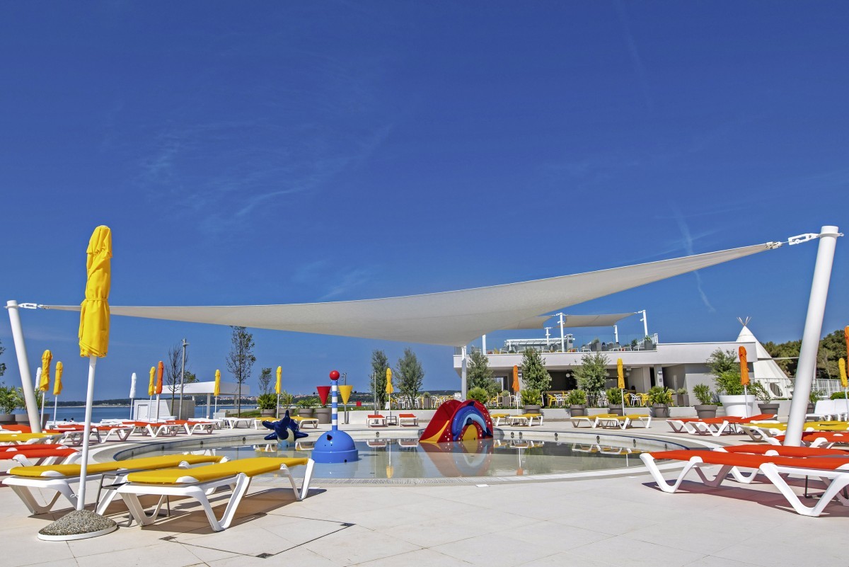 Wzdłuż kompleksu rozciąga się 3-kilometrowa plaża z kamieniami, żwirem i skałami. Znajduje się tam bar sportowy i plażowy, a także trawnikami do opalania - w zależności od zakwaterowania 50-500m. Ponadto słynna plaża z drobnym żwirem i piaskiem „Bijeca” oddalona jest zaledwie o 2 km.