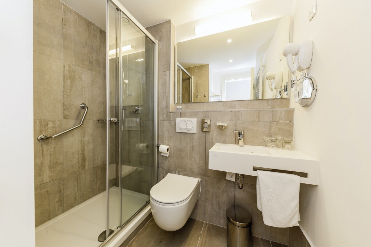 Pokój dwuosobowy typu A: ok. 21 m², zlokalizowany w części budynku A, odnowiony, z balkonem od strony parku. Można również zarezerwować pokoje na wyższych piętrach z balkonem od strony morza.