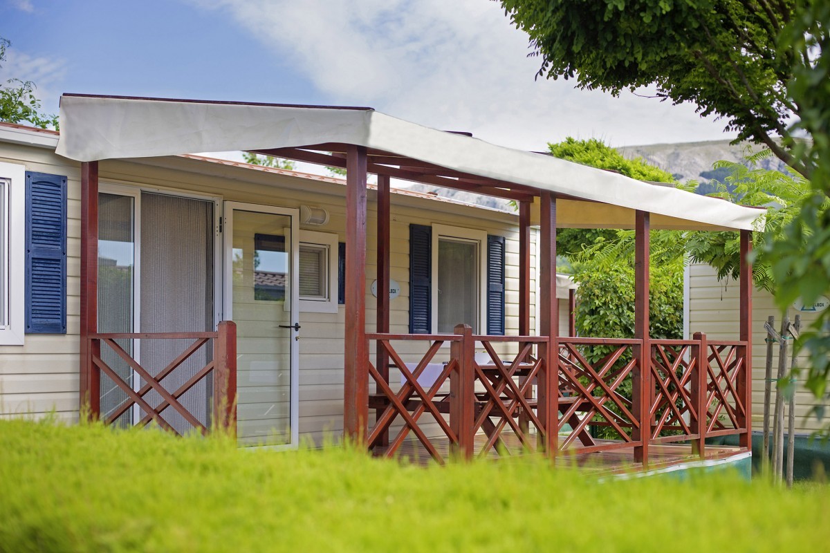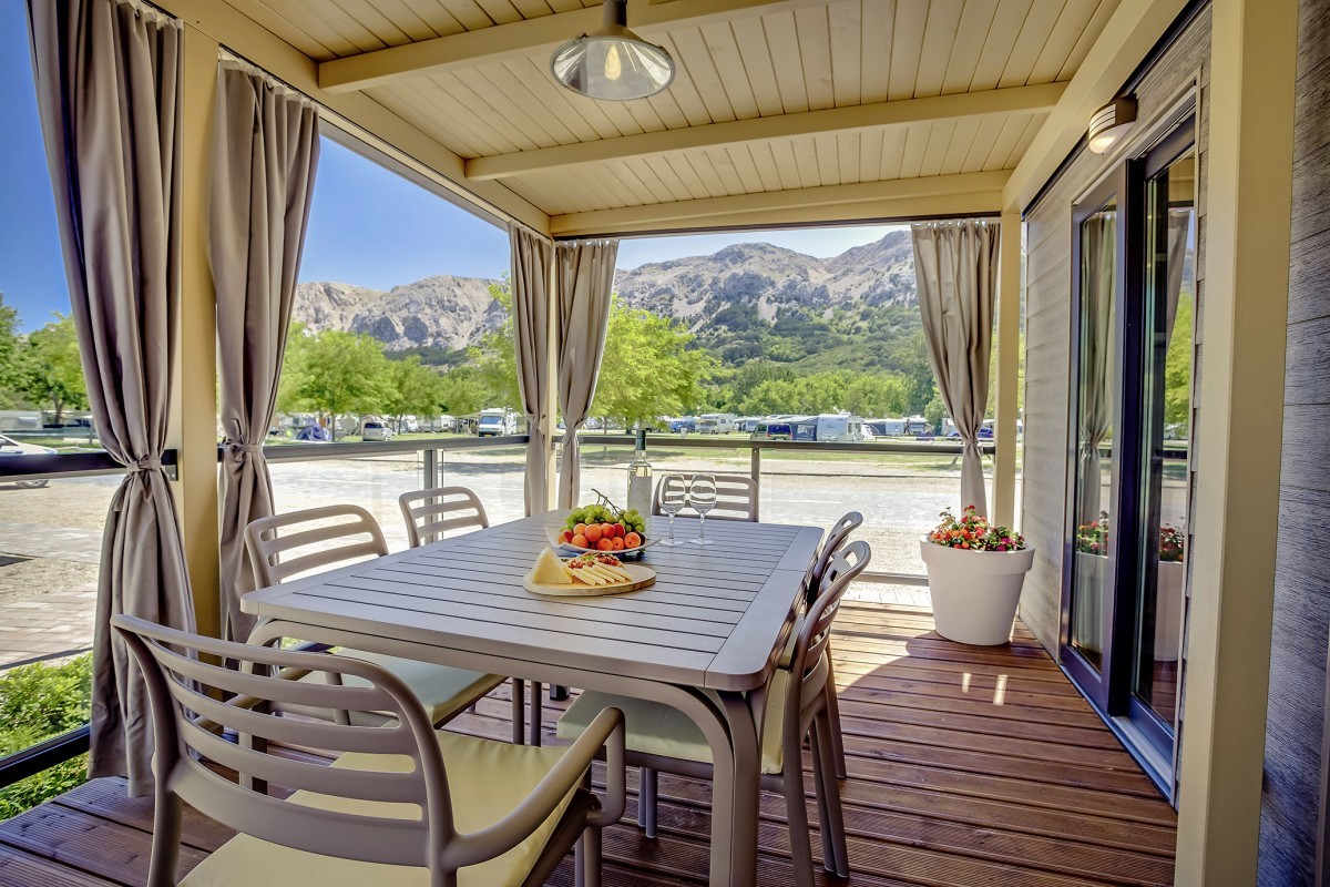 Mobilhome "Vela Bay Premium" dla 4-6 osób: ok. 32 m², jedna sypialnia z łóżkiem małżeńskim, jedna sypialnia z dwoma pojedynczymi łóżkami (80x200 cm), dwie łazienki z prysznicem/WC, salon z częścią wypoczynkową (miejsce do spania dla 2 dzieci do 11,99 lat), stół jadalny oraz w pełni wyposażona kuchnia z kuchenką , kuchenka mikrofalowa, lodówka z zamrażarką i ekspres do kawy. Zadaszony taras z miejscami do siedzenia i dwoma leżakami. Ponadto bezpłatne WiFi, telewizja satelitarna i klimatyzacja. Mobihome znajduje się w części Vela Bay Village.