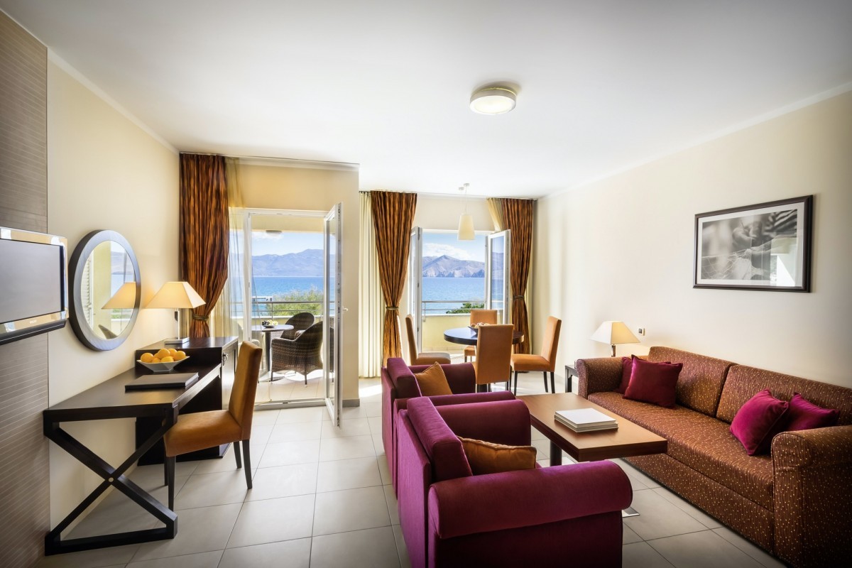 Zakwaterowanie, śniadanie, sprzątanie końcowe, opłata klimatyczna, korzystanie z basenu zewnętrznego w Sunny Baška by Valamar Hotel.