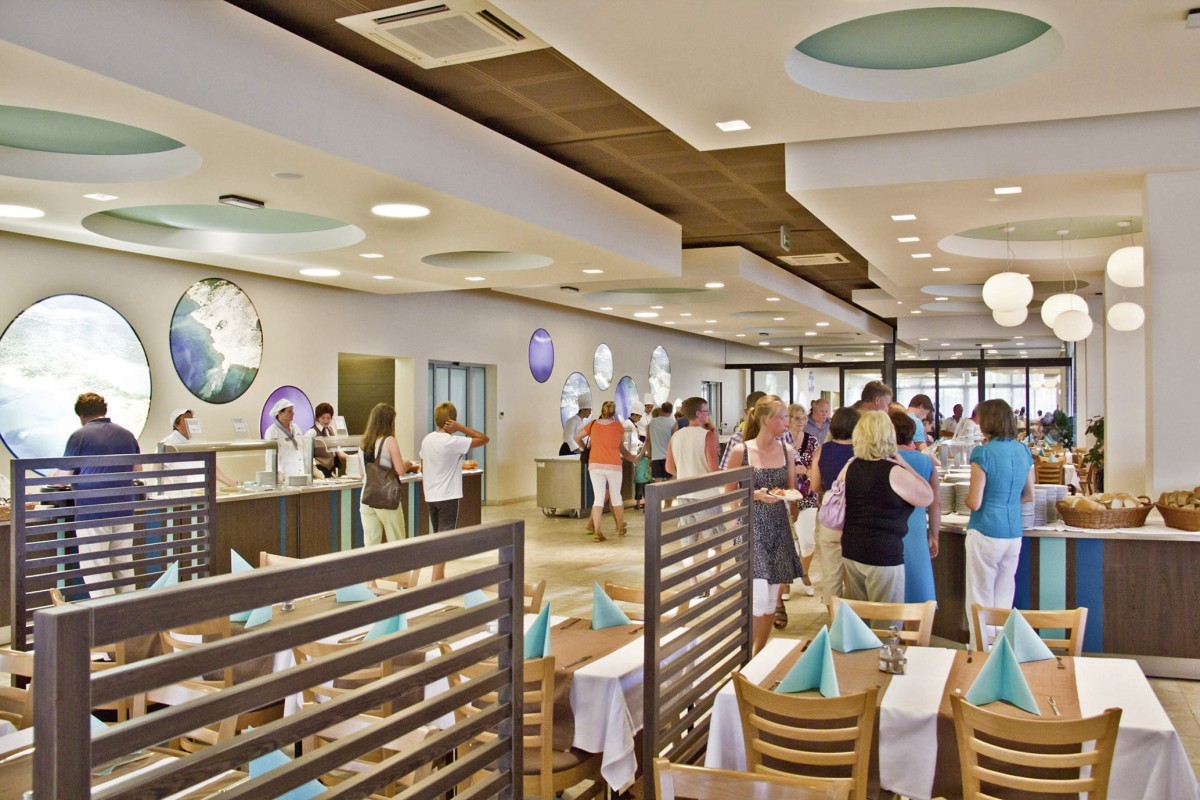 Śniadanie w formie bufetu.Możliwość wykupienia obiadokolacji w formie bufetu z napojami do obiadokolacji: wino, piwo, soki, woda mineralna (HB PLUS) za opłatą 6 EUR za osobę za dzień.